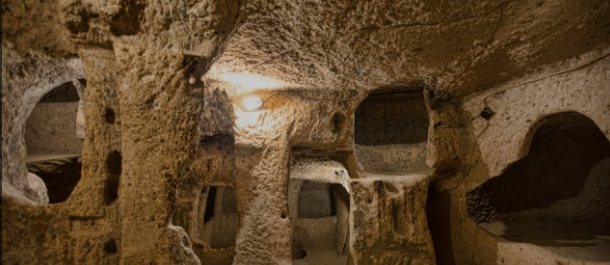 1963년 터키의 카파도키아에서 어린아이가 농장에서 도망친 닭을 쫓다 땅에서 작은 구멍을 발견하였는데, 그 구멍 속에서 엄청난 크기의 데린쿠유를 발견하게 됩니다. 데린쿠유는 터키어로 '깊은 우물'이라는 뜻을 가진 지하도시입니다.