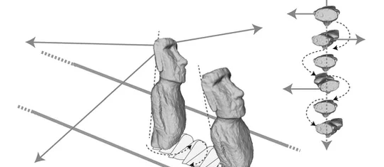 원주민들은 석상들이 채석장에서 설치된 장소까지 마술처럼 걸어갔다는 전설을 말해줍니다. '걸어가는 모아이'가 나오는 노래가 여러 곡 있는데 뱃노래 같은 노동요로서 일을 하는 동안 박자와 리듬을 주기 위함이었는데요, 심지어 이스터섬에서 사용하는 언어인 라파누이어에는 '다리 없이 걷기'를 의미하는 네케네케라는 표현도 있습니다. 연구진은 이것을 토대로 5t 무게의 모아이복제품을 만들어 로프하나는 머리에 나머지하나는 하단부에 묶어 펭귄이 걷듯이 뒤뚱뒤뚱 석상의 몸을 비틀며 걷게 하는 실험을 했습니다. 결과는 40분 동안 100m를 움직였고, 이기술이 숙련된 사람의 실력을 고려해 봤을 때 섬주민들이 석상을 1km 정도 걷게 하는데 하루정도면 충분할 것이라고 결론 지었습니다.